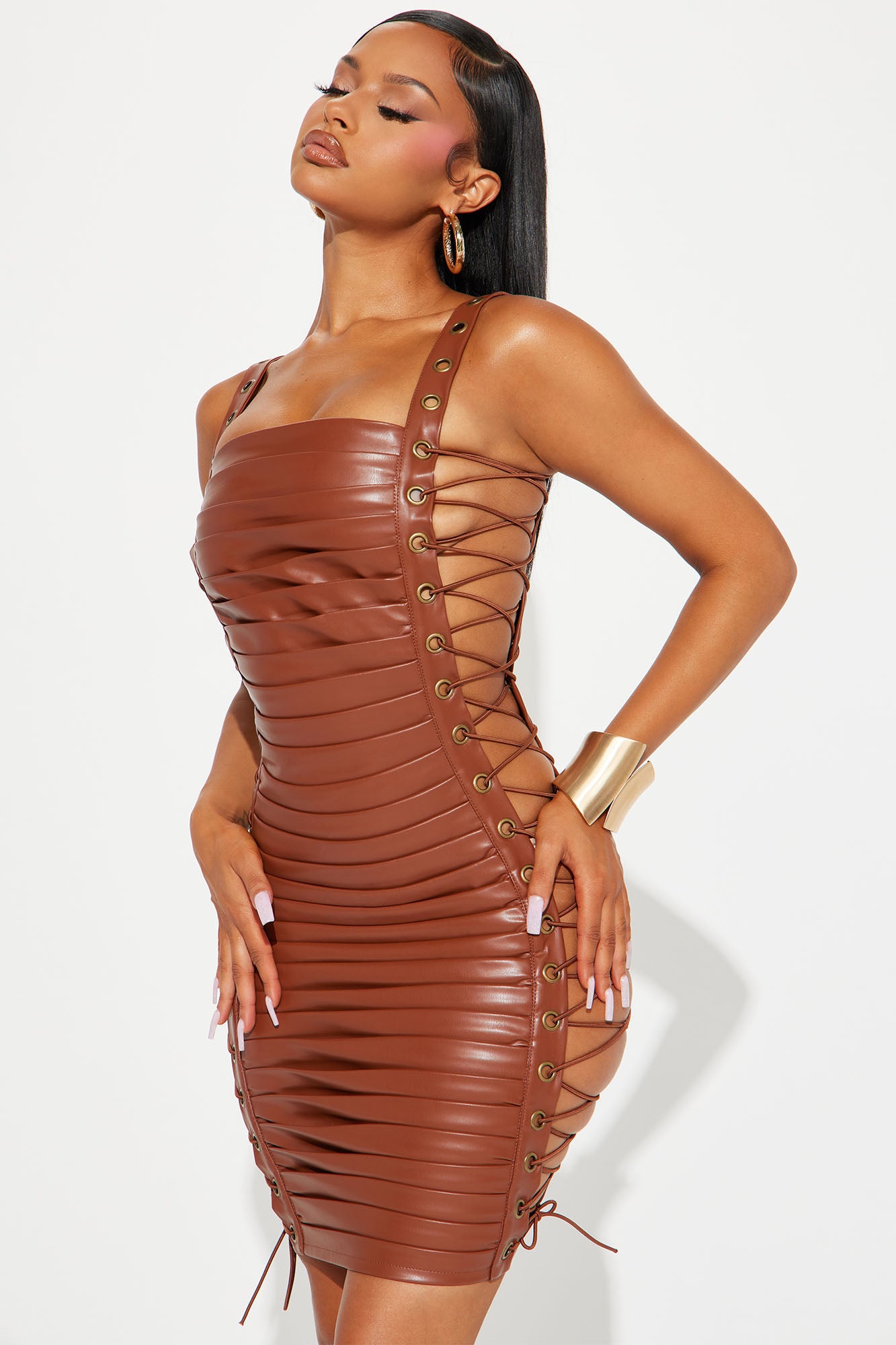 You Could Never Faux Leather Mini Dress - Brown